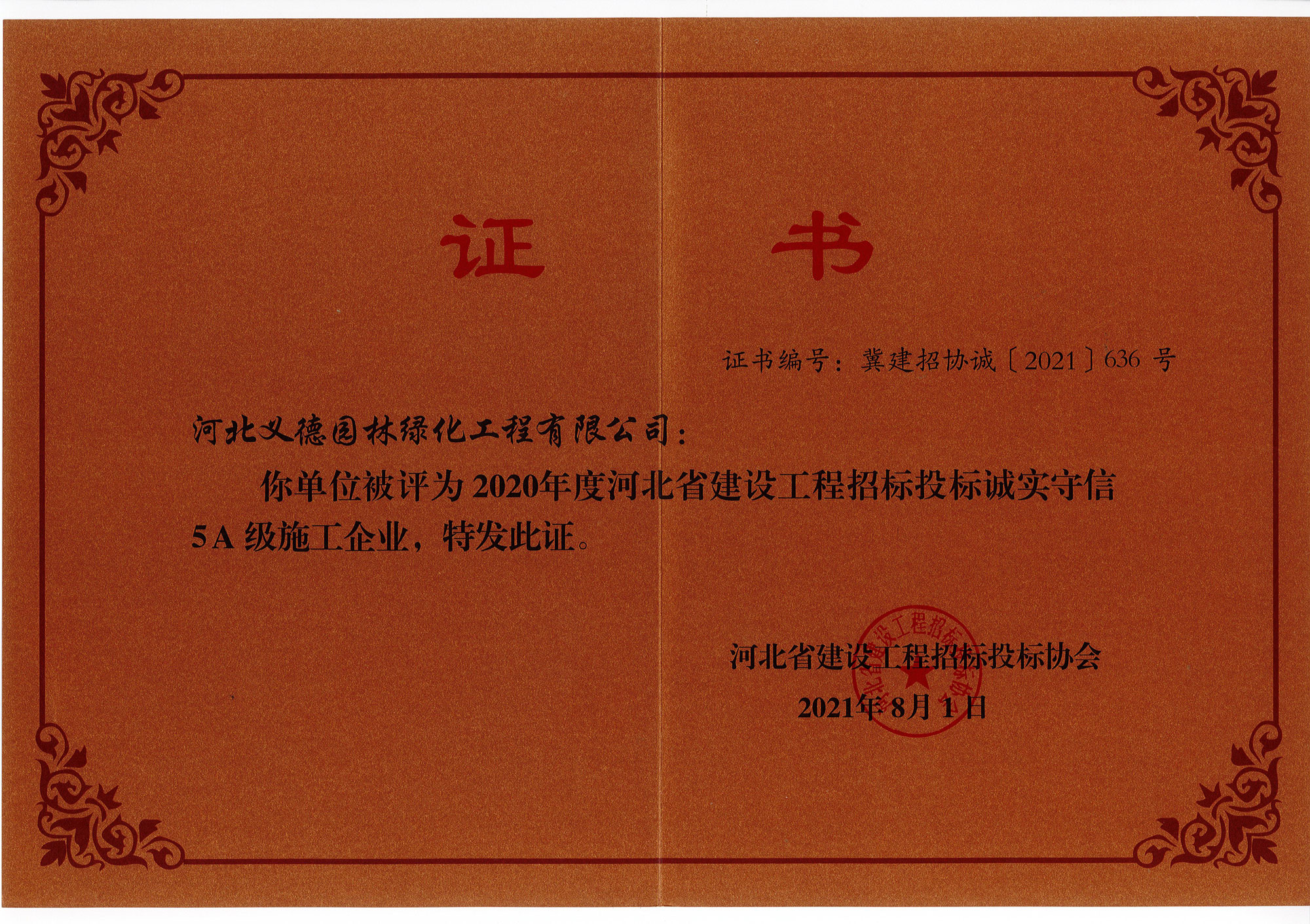 • 2020年度招標投標誠實守信5A級施